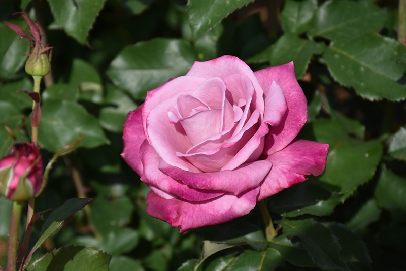 Fragrant Plum Rose is covered in stunning fragrant double lavender flowers with pink edges at the ends of the branches from early summer to early fall. The flowers are excellent for cutting. It has dark green deciduous foliage. The oval compound leaves turn yellow in fall.